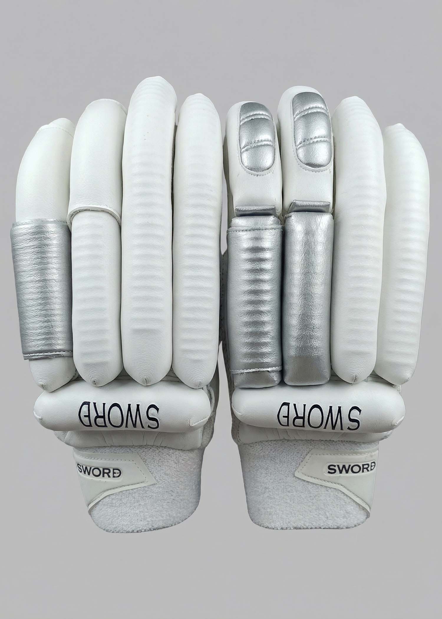 Finished in a clean white and silver combination, these gloves deliver a sharp professional look while maintaining the performance features needed for both practice and match play. The finger sections are built to support natural hand movement, helping you stay relaxed and in control while playing a full range of shots. Protective padding across key areas adds confidence against impact, while the lightweight structure keeps the gloves comfortable through long innings.