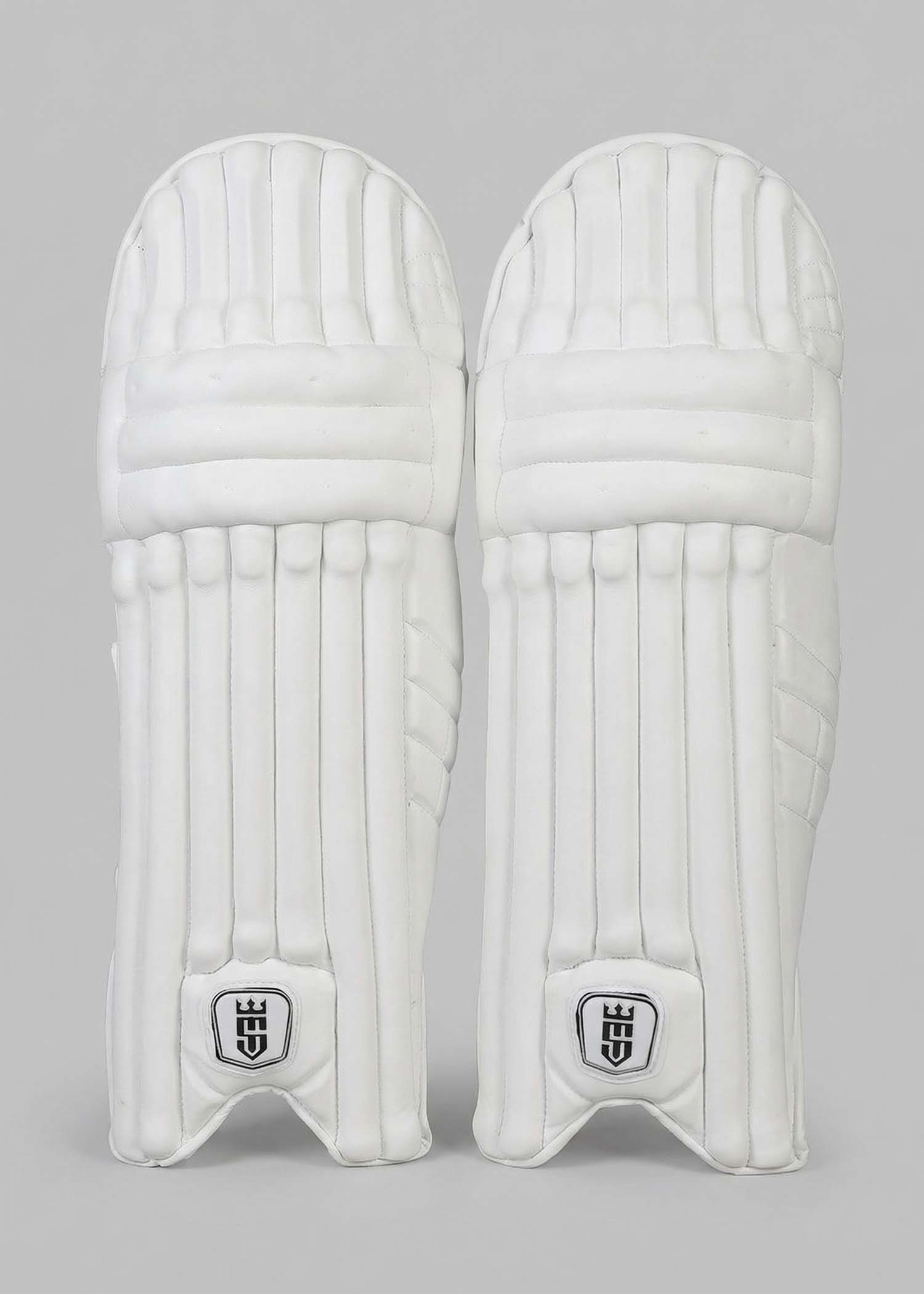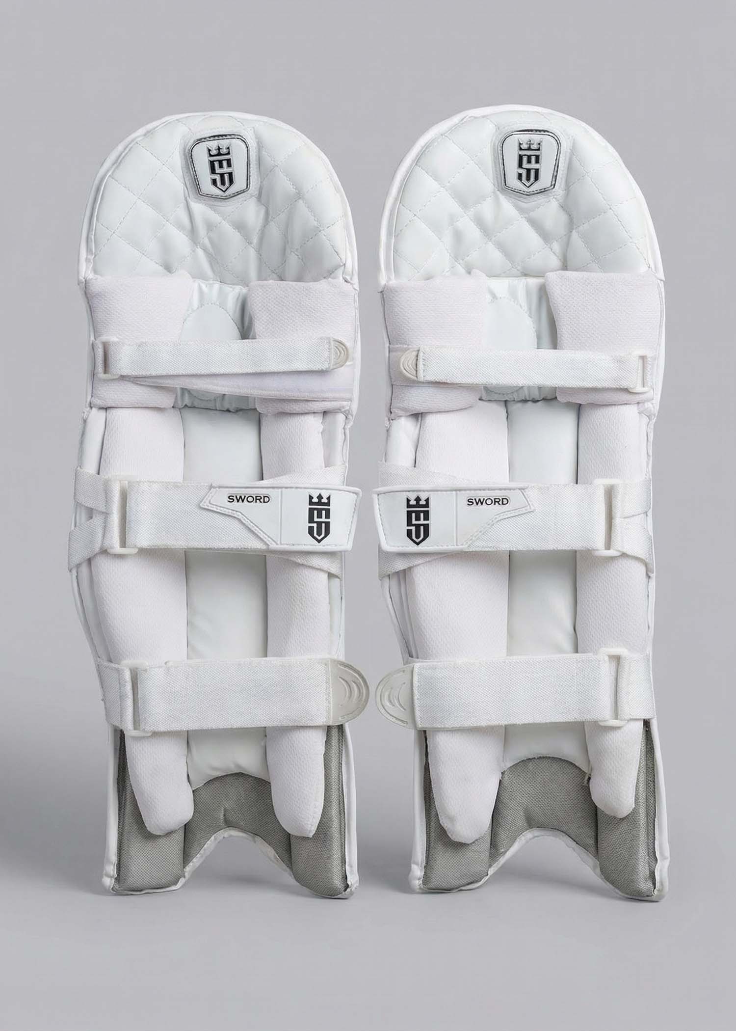 The Sword Player White Batting Leg Guards are crafted for cricketers who value comfort, protection, and classic match-ready style.